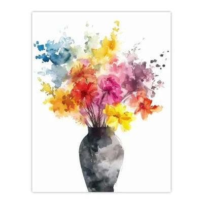 Artery8 Flower Bouquet in Vase Abstract Watercolour For Living Room Large Wall Art Poster Print Thick Paper 18X24 Inch