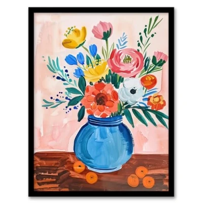 Artery8 Flower Bouquet Vase and Fruit Still Life Painting Living Room Artwork Framed Wall Art Print A4