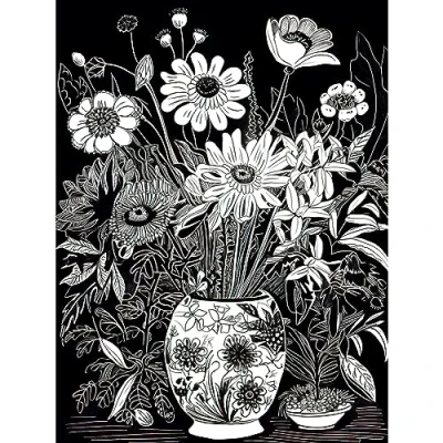 Artery8 Flower Bouquet Vase Black and White Blind Contour Extra Large XL Wall Art Poster Print