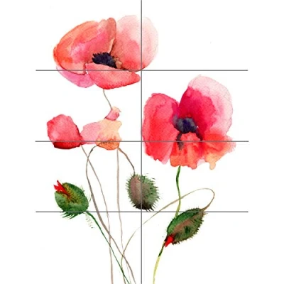 Artery8 Flower Poppies Watercolour XL Giant Panel Poster (8 Sections)