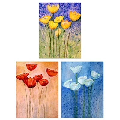 Artery8 Flowers Tulips Poppies Oil Paintings Set Of 3 Unframed Wall Art Prints Bedroom Bathroom Aesthetic Wildflowers 12X16 Inch