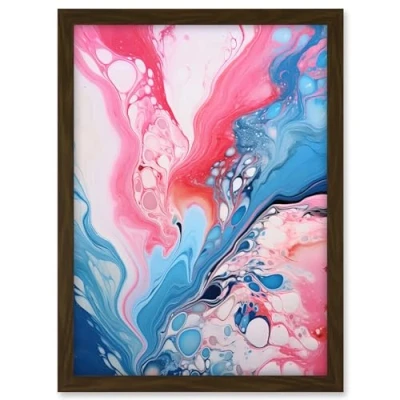 Artery8 Fluid Paint Acrylic Pouring Abstract Artwork Pink Blue Flowing Colours Framed A3 Wall Art Print