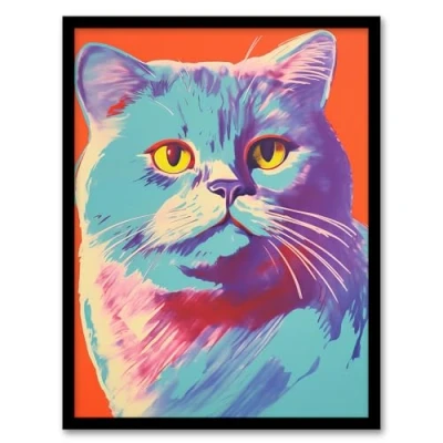 Artery8 Fold Cat Risograph Screen Print Artwork Spot Block Colour Duotone Retro Riso Interior Design Framed Wall Art A4