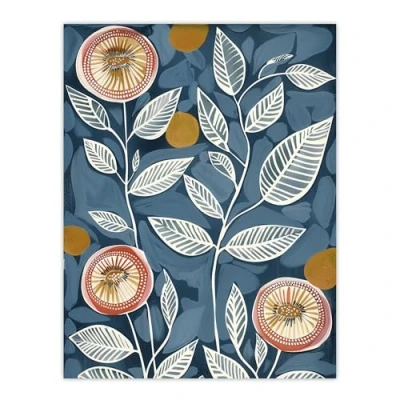 Artery8 Folk Art Flower Line Patterns Blue Pink Painting Bedroom Extra Large XL Wall Poster Print