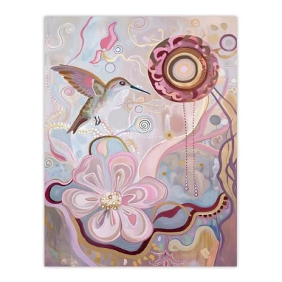 Artery8 Folk Art Hummingbird with Pink Abstract Flowers Living Room Extra Large XL Wall Poster Print