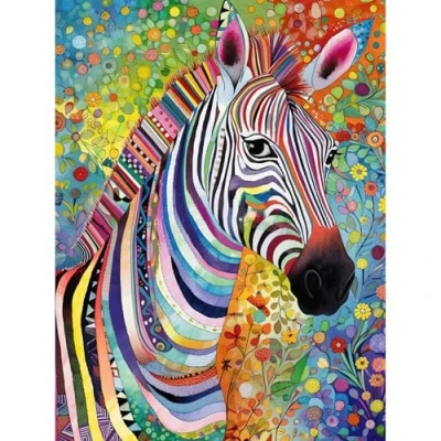 Artery8 Folk Art Zebra Colourful Flower Boho Extra Large XL Wall Poster Print