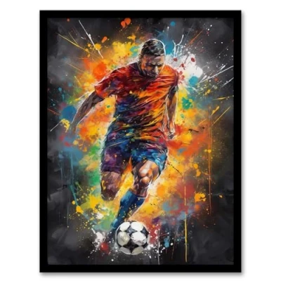 Artery8 Football Striker Colourful Artwork Boys Bedroom Gift For Him Fan Man Cave Framed Wall Art Print A4