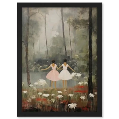 Artery8 Forest Ballet Oil Painting Kids Bedroom Ballerinas Gracefully Dancing by a Lake Artwork Framed A3 Wall Art Print