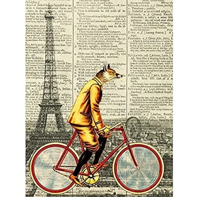 Artery8 Fox Bicycle Paris France Upcycle Style Dictionary Unframed Wall Art Print Poster Home Decor Premium
