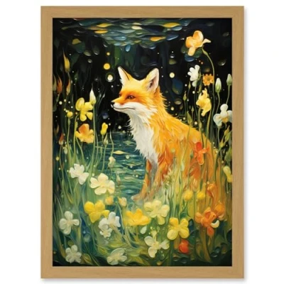 Artery8 Fox Dream Floral Yellow Oil Painting Orange White Dreamscape of Lily Flowers in Spring Artwork Framed Wall Art Print A4