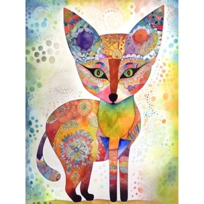 Artery8 Fox Folk Art Watercolour Painting Extra Large XL Wall Poster Print