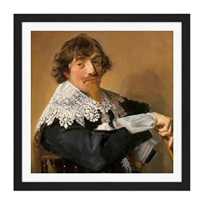 Artery8 Frans Hals Portrait Of A Man Painting Square Wooden Framed Wall Art Print Picture 16X16 Inch