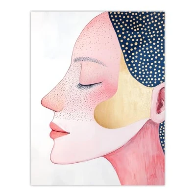 Artery8 Freckles Woman Portrait Pink Blue Gold Polka Dot Living Room Large Wall Art Poster Print Thick Paper 18X24 Inch