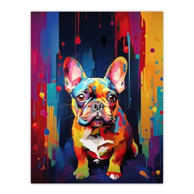 Artery8 French Bulldog Dog Lover Gift Pet Portrait Colourful Neon Artwork Painting Large Wall Art Poster Print Thick Paper 18X24 Inch