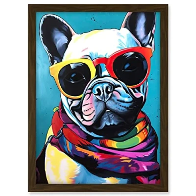 Artery8 French Bulldog in Sunglasses and Bandana Folk Art Artwork Framed A3 Wall Print