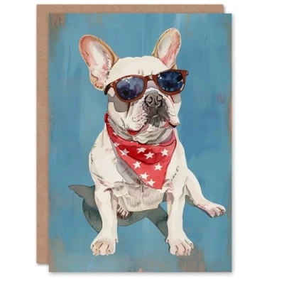 Artery8 French Bulldog Sunglasses and Bandana Dog Lover Blank For Him Or Her Art Birthday Card