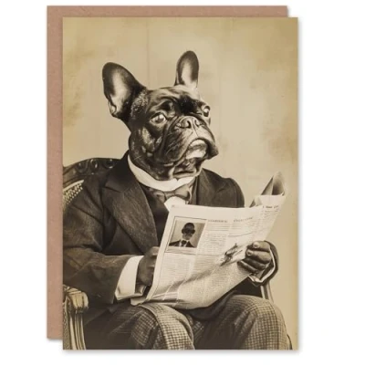 Artery8 French Bulldog Vintage Collage Portrait Dog Lover Blank For Him Or Her Art Birthday Card