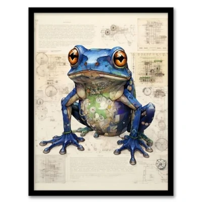 Artery8 Frog Robot Hybrid Secret Military Schematic Blueprint Futuristic Complex Arcane Manuscript Gift For Him Man Cave Artwork Framed Wall Art Print A4