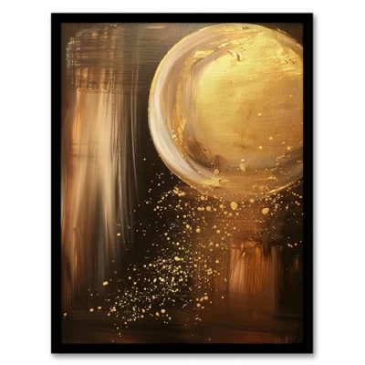 Artery8 Full Moon Golden Glimmers Abstract Oil Painting Living Room Artwork Framed Wall Art Print A4
