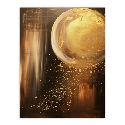 Artery8 Full Moon Golden Glimmers Abstract Oil Painting Living Room Large Wall Art Poster Print Thick Paper 18X24 Inch