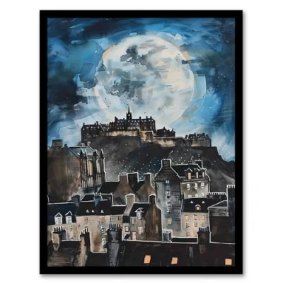 Artery8 Full Moon Night Edinburgh Castle Conceptual Art Living Room Artwork Framed Wall Print A4