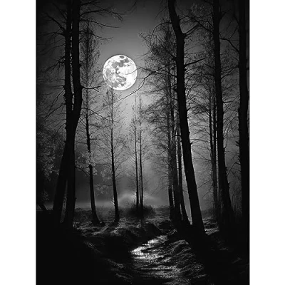 Artery8 Full Moon Over Misty Forest Black and White Photo Extra Large XL Wall Art Poster Print
