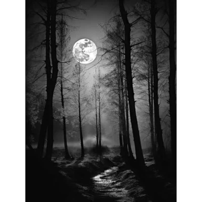 Artery8 Full Moon Over Misty Forest Black and White Photo Large Wall Art Poster Print Thick Paper 18X24 Inch