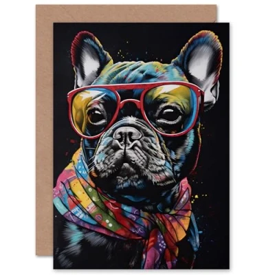Artery8 Fun Black Pug Bandana for Husband Him Dad Son Brother Birthday Thank You Congratulations Blank Art Greeting Card