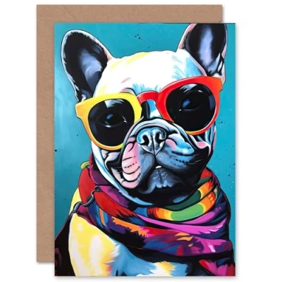 Artery8 Fun French Bulldog Folk Art for Husband Him Dad Son Brother Birthday Thank You Congratulations Blank Greeting Card