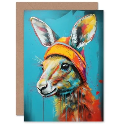 Artery8 Fun Kangaroo Joey in Hat for Wife Her Mum Sister Daughter Mom Gran Nan Birthday Thank You Congratulations Blank Art Greeting Card