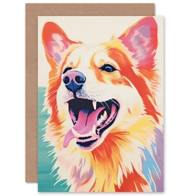 Artery8 Fun Playful Dog Portrait for Him or Her Man Woman Birthday Thank You Congratulations Blank Art Greeting Card