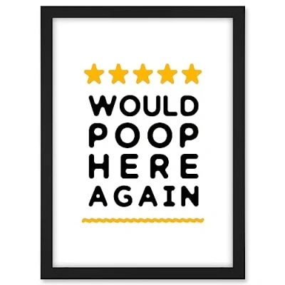 Artery8 Funny Bathroom Review Sign Five Stars Would Poop Here Again Toilet Decor Artwork Framed A3 Wall Art Print