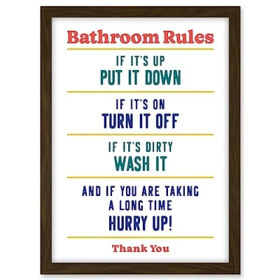 Artery8 Funny Bathroom Rules Art Toilet Sign Wall Artwork Framed A3 Print