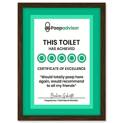 Artery8 Funny Bathroom Wall Art Five Stars Poop Advisor Toilet Sign Decor Artwork Framed A3 Print