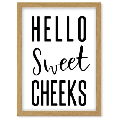 Artery8 Funny Bathroom Wall Art Hello Sweet Cheeks Cheeky Toilet Sign Artwork Framed Print A4