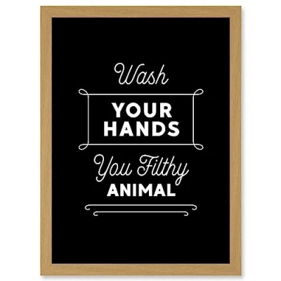 Artery8 Funny Bathroom Wall Art Wash Your Hands You Filthy Animal Toilet Sign Decor Artwork Framed A3 Print