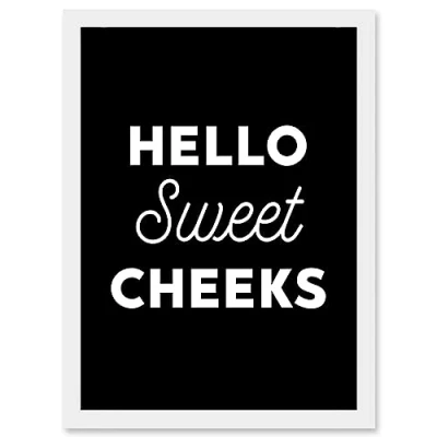 Artery8 Funny Toilet Decor Bathroom Wall Art Hello Sweet Cheeks Cheeky Sign Artwork Framed Print A4