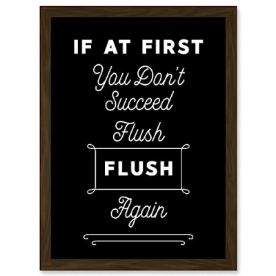 Artery8 Funny Toilet Sign If At First You Don't Succeed Flush Again Bathroom Wall Art Artwork Framed A3 Print