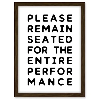 Artery8 Funny Toilet Wall Art Please Remain Seated Entire Performance Bathroom Sign Decor Artwork Framed A3 Print