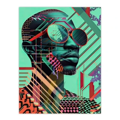 Artery8 Futuristic African Man Shades Portrait Teal Bold Living Room Large Wall Art Poster Print Thick Paper 18X24 Inch