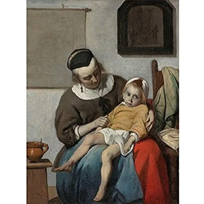 Artery8 Gabriel Metsu The Sick Child Painting Art Print Canvas Premium Wall Decor Poster Mural