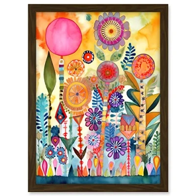 Artery8 Garden Flowers In Spring Folk Art Watercolour Painting Artwork Framed A3 Wall Print