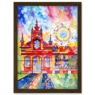 Artery8 Gaudi Inspired Rural Train Station Folk Art Artwork Framed A3 Wall Print