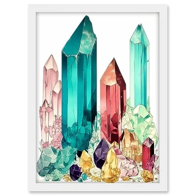 Artery8 Gemstone Crystals Watercolour Study Purple Blue Pink Yellow Healing Energy Mineral Artwork Framed A3 Wall Art Print
