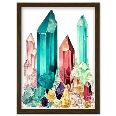 Artery8 Gemstone Crystals Watercolour Study Purple Blue Pink Yellow Healing Energy Mineral Artwork Framed Wall Art Print A4