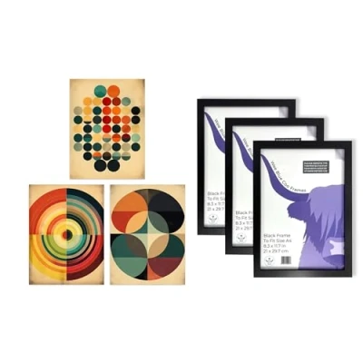 Framed Art Pack: This top-tier collection features 3 high quality, unframed wall art prints and 3 engineered wood frames. Each print is printed onto thick, luxurious art paper. Size: Each elegant piece is A4 sized and measures 29.7 x 21 cm (8.3 x 11.7 inches). Care & Quality: Please note that some assembly is required and that there may be some variation in the colour of the on-screen image and the actual item received. This is subject to the brightness and contrast of your screen settings. Versatility: These prints provide an aesthetic uplift to any space - be it living rooms, home offices, bedrooms, bathrooms, kitchens, and even B&Bs or traditional office environments. With our wide range of art styles from abstract to modern, classical, and more, there's something to cater to every art enthusiast's taste. Ideal Gift: Our art prints make a perfect, thoughtful gift for occasions like birthdays, Mothers Day, Christmas, Anniversary, or a housewarming present.