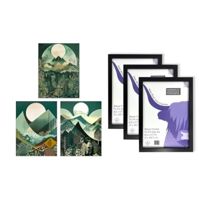 Framed Art Pack: This top-tier collection features 3 high quality, unframed wall art prints and 3 engineered wood frames. Each print is printed onto thick, luxurious art paper. Size: Each elegant piece is A4 sized and measures 29.7 x 21 cm (8.3 x 11.7 inches). Care & Quality: Please note that some assembly is required and that there may be some variation in the colour of the on-screen image and the actual item received. This is subject to the brightness and contrast of your screen settings. Versatility: These prints provide an aesthetic uplift to any space - be it living rooms, home offices, bedrooms, bathrooms, kitchens, and even B&Bs or traditional office environments. With our wide range of art styles from abstract to modern, classical, and more, there's something to cater to every art enthusiast's taste. Ideal Gift: Our art prints make a perfect, thoughtful gift for occasions like birthdays, Mothers Day, Christmas, Anniversary, or a housewarming present.
