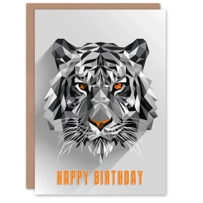 Artery8 Geometric Tiger Head Grey Orange Polygonal Animal Blank For Him Or Her Art Birthday Card