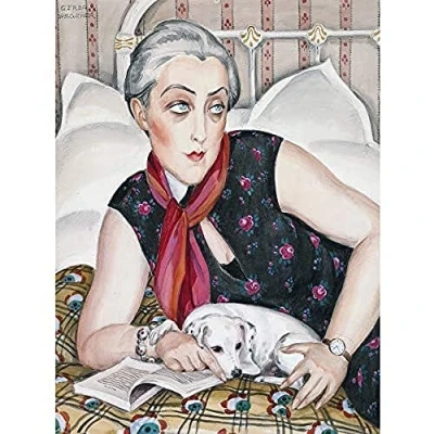 Artery8 Gerda Wegener Woman Dog Reading Painting Art Print Canvas Premium Wall Decor Poster Mural