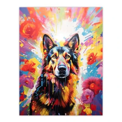 Artery8 German Shepherd Dog Lover Gift Pet Portrait Colourful Bright Artwork Painting Large Wall Art Poster Print Thick Paper 18X24 Inch